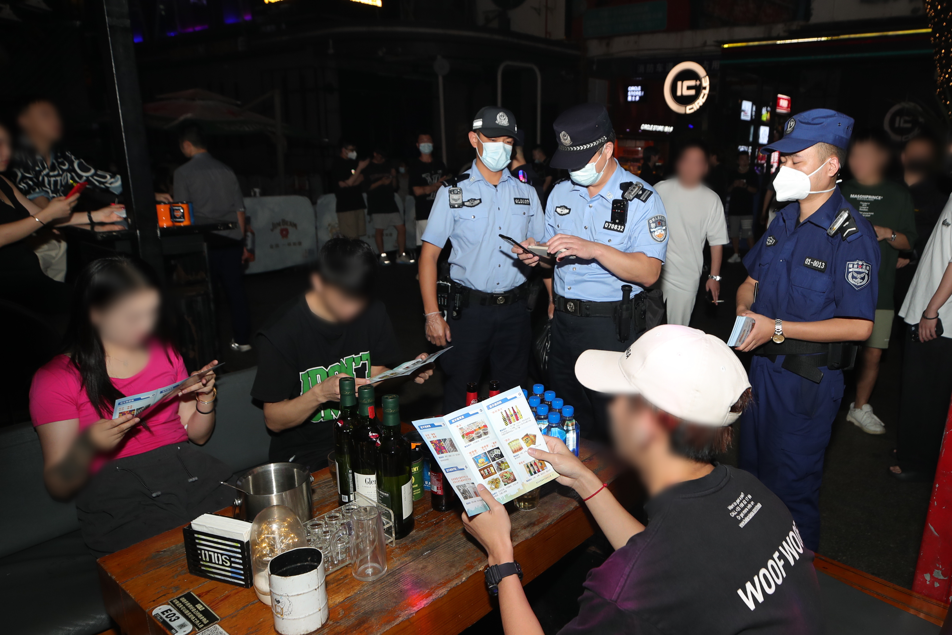 民警在重点场所开展禁毒宣传。(福田公安分局供图)