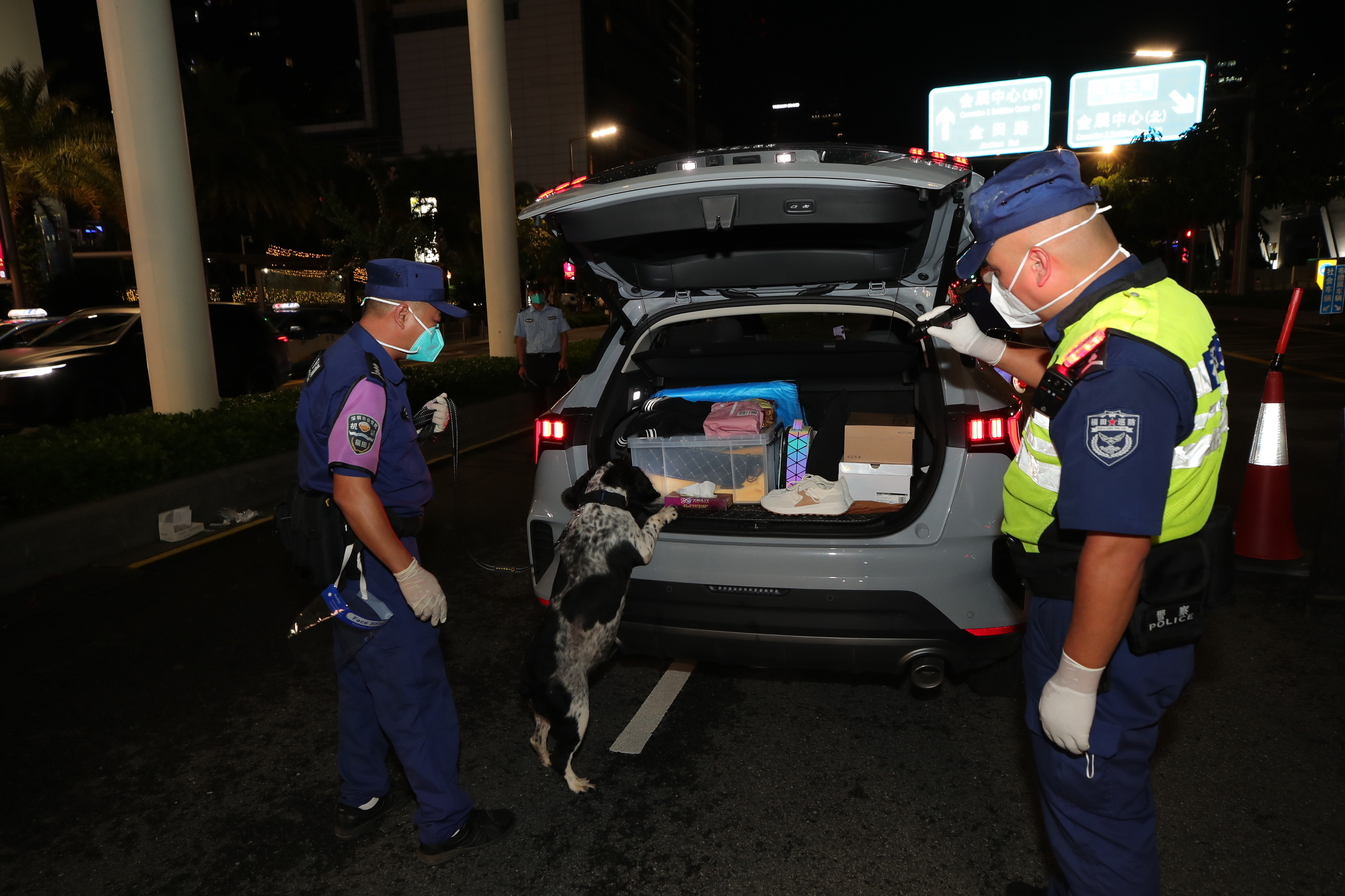 缉毒犬协助查缉车辆。(福田公安分局供图)