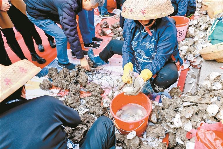 第二十一届宝安区沙井金蚝美食非遗民俗文化活动于12月20日启动,为期13天。 图为开蚝大赛