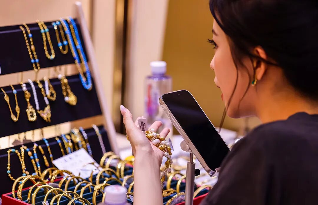 依托水贝“一码当先”溯源系统,这里的产品从生产到销售的全流程信息透明可查?!敖鸩事藓ば轮侍剿鳌背鞘猩疃忍逖橹芑疃诩?,这份信任如纽带般牵起产销两端,带动黄金珠宝成交额超300万元。