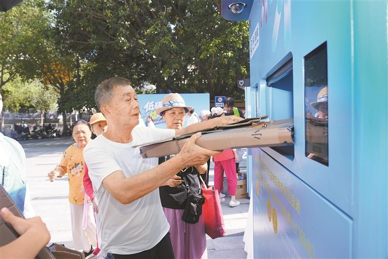 深圳新闻网2025年9月17日讯(深圳特区报记者 林清容 文/图)手机扫一扫,废品“码”上变现,“深i回收”智能回收箱“俘获”越来越多市民的心。近日,记者从深圳市生活垃圾分类管理事务中心获悉,今年以来,深圳加速推进智能回收箱进小区,目前,全市住宅小区布设可回收物智能回收箱约4500台,覆盖率超65%,科技、便捷的智能回收激发市民通过攒“零钱”来参与垃圾分类的热情。