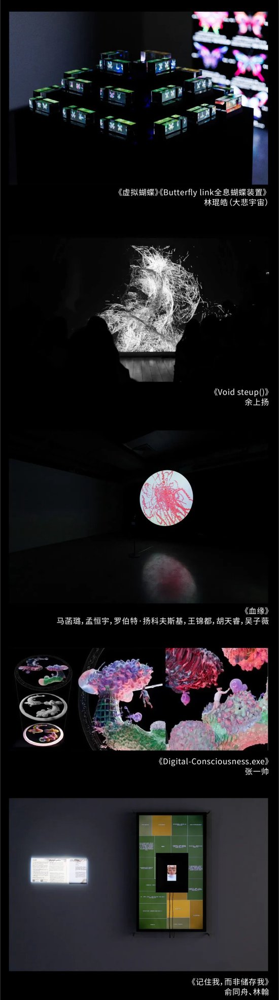 展览通过互动装置、沉浸影像、数据界面与虚拟环境等多形式,将算法的逻辑转化为可感、可触的观感现场?;ザ皇悄康?,而是思考的起点。生成蝴蝶,是对生物多样性的追问;数字意识,是“我们是谁”的探寻。