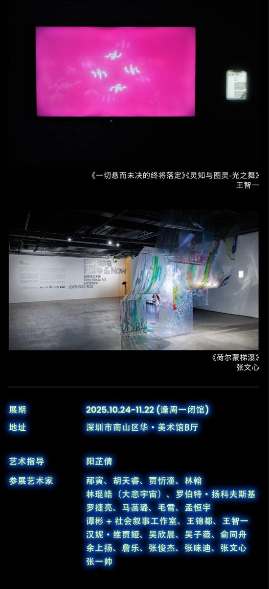 深圳新闻网2025年10月27日讯(记者 张玲)在数字浪潮深度重塑个体感知与存在方式的今天,“即时”的响应与“即地”的在场,正悄然重构我们与世界的关联。2025年10月24日,“即时即地-新媒体艺术展”于华美术馆正式拉开帷幕。本次展览由中共深圳市南山区委宣传部主办,深圳市文化创意与设计联合会承办,深圳市华侨城当代艺术中心协办。